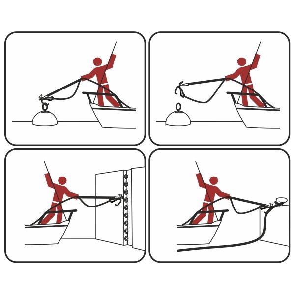 系泊鉤這允許持有和釋放浮標(biāo)當(dāng)你遙遠的時候,避免在船鉤上固定任何支撐。非常簡單使用,只需要用一只手保持船鉤,并用另一只手拉繩子,以打開連接器的門。