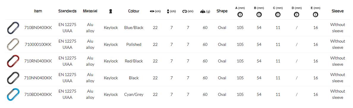 橢圓形鋁合金制登山具有圓形截面,因此非常適合在移動裝備上使用(滑輪,閉鎖器,防墜器...)。