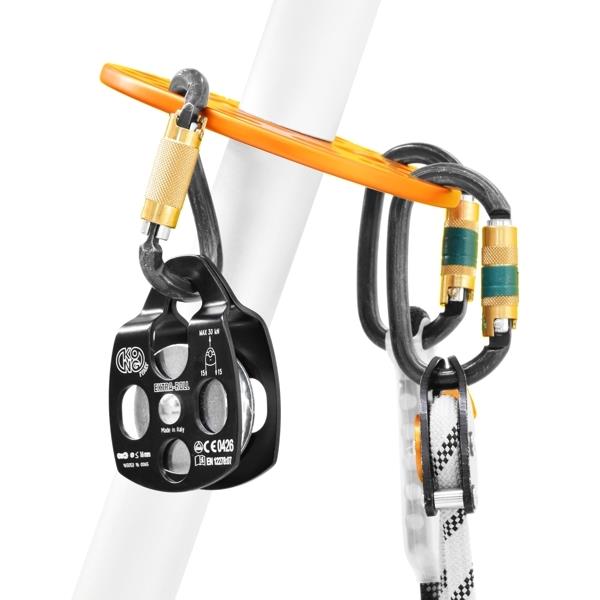 The top is composed of two DISCORIG plates with “Textile Friendly” connection points. Ropes and slings can be attached directly to the plate, providing a wide range of possible configurations with pulleys, connectors and mechanical rope clamps.
