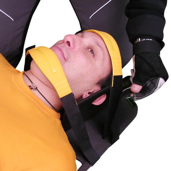 固定受傷頭部的裝置。 配有帶側(cè)扶手的座墊、兩個用于固定前額和下巴的塑料襯墊吊索以及兩個用于快速緊固的尼龍粘扣帶。 使用活動 直升機救援 山地救援