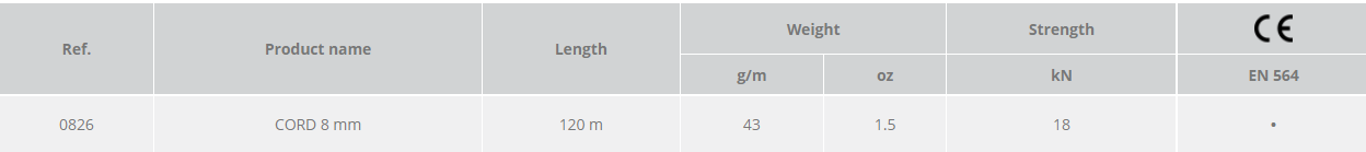 8mm輔助保護繩,適用于不同工作環(huán)境保護使用,可制成雞爪繩,120米/捆,拉力18KN,重量:43g/米。認證標準:CE EN564