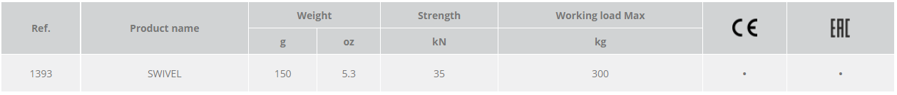 滾珠軸承式萬向結(jié),可避免繩索發(fā)生打擰或纏繞,拉力:35KN,重量:160g。認(rèn)證標(biāo)準(zhǔn):CE EN0123