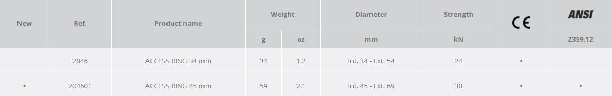 鋁合金連接環(huán)可與各種防墜落保護裝備連接,同樣可以插入TREE ACCESS安全帶前面的連接系統(tǒng)。內(nèi)徑34mm,外徑54mm,拉力:22KN。重量:34g。認證標準:CE EN354