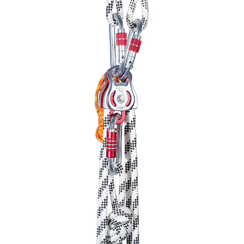 雙滑輪適合組建滑輪組,超大承重連接孔可同時(shí)連接兩把安全掛鉤,兩側(cè)可安裝抓結(jié),自動(dòng)潤(rùn)滑軸套設(shè)計(jì)適用于低速工作環(huán)境,工作效率:80%,最大過(guò)繩直徑:13mm。鋁合金材質(zhì)側(cè)板和轉(zhuǎn)輪,不銹鋼輪軸,拉力:24KN,工作負(fù)荷:1KN*4=4KN,尺寸:高102mm*寬61mm,上承重掛點(diǎn)孔徑26mm/下承重掛點(diǎn)孔徑14mm,重量:170g。認(rèn)證標(biāo)準(zhǔn):CE EN 12278+EAC