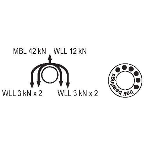高強度可移動側板雙滑輪,超大承重連接孔可同時連接三把安全掛鉤,兩側設計有輔助連接孔及下端固定連接孔,軸承潤滑設計適用于高速工作環(huán)境,工作效率:97%,最大過繩直徑:16mm。鋁合金材質側板和轉輪,不銹鋼輪軸,拉力:42KN,工作負荷:3KN*4=12KN,尺寸:高147mm/寬100mm/上承重掛點孔徑32mm/下承重掛點孔徑19mm/兩側承擔掛點孔徑14mm,重量:425g。認證標準:CE EN12278+EAC