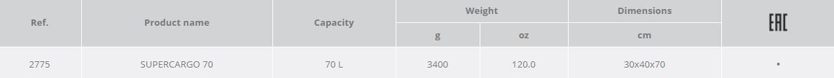 時被絆住。超大拉力牽引帶負(fù)載高達(dá)80公斤,超大提升手柄,方便戴手套操作。拉繩式封口設(shè)計,頂蓋翻蓋操作,內(nèi)部設(shè)計有安全袋和四個裝備掛環(huán)。尺寸:30*40*70cm,容量:70L,重量:3400g。