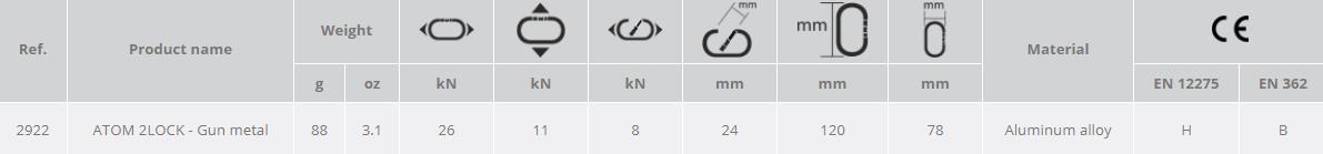 • 產(chǎn)品描述:意大利坎普CAMP ATOM 2LOCK 2922高空作業(yè)自動扣主鎖