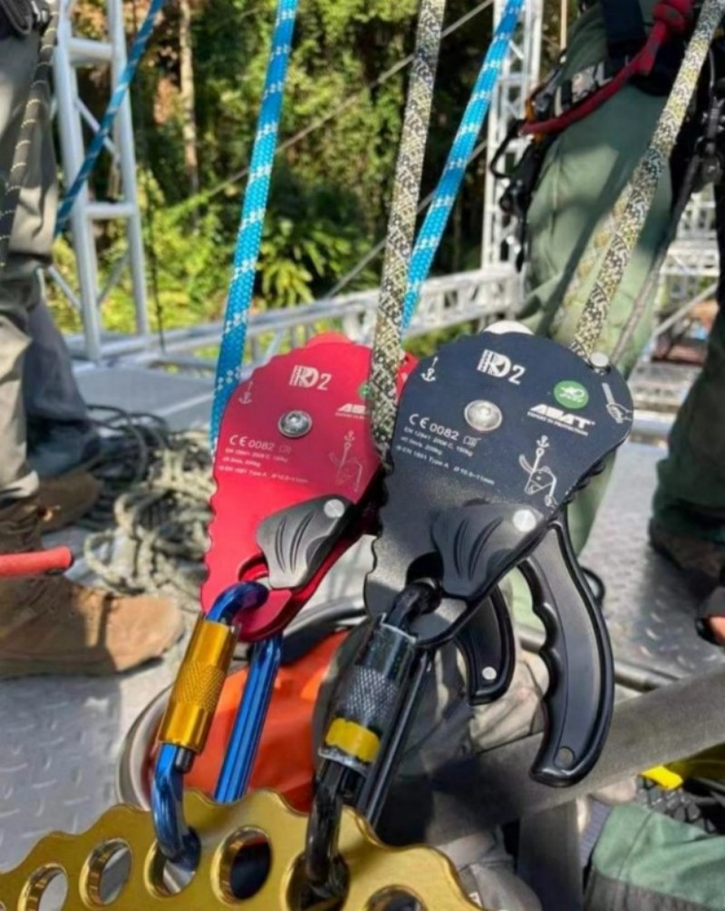 是一款集下降、上升、提升、拖拽功能于一體的繩索救援設(shè)備,前面板掛點(diǎn)采取可開(kāi) 放設(shè)計(jì),便于操作人員在不摘下設(shè)備的情況下,直接安裝、拆取繩索。有救援功能,RD2采用止退滾動(dòng)滑輪+鎖止塊設(shè)計(jì),可由救援人員協(xié)助其他人上升或下降,幫助人員迅速到達(dá)目標(biāo)位置,適合需要繩索技術(shù)作業(yè)的場(chǎng)合。需要高空下放操作時(shí),通過(guò)控制救援型下降器的手柄實(shí)現(xiàn)順暢下降。當(dāng)下降環(huán)境受限時(shí),松開(kāi)手柄可立即停止下 降,鎖止靈敏。拖拽操作時(shí),即使?fàn)恳送蝗皇Э鼗蜥尫?,重物?huì)迅速鎖止在系統(tǒng)中,不會(huì)自由下降。
