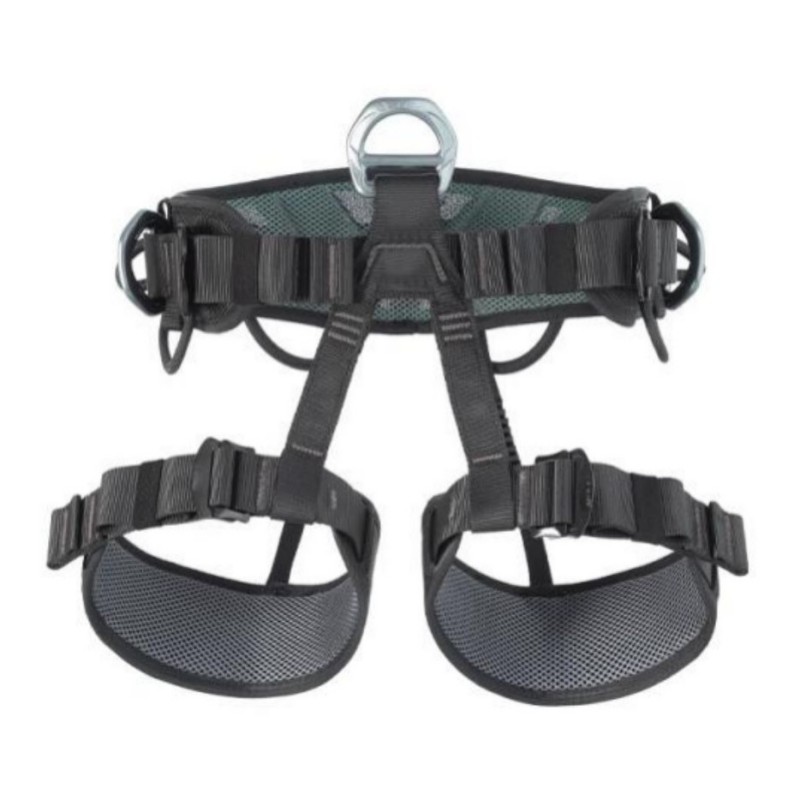 腹前的攀爬保護(hù)環(huán)可以連接到保護(hù)繩索進(jìn)行技術(shù)攀巖和繩索下降,腿環(huán)采用寬窄變化織帶,方便救援者腿腳的騰挪攀登。腰環(huán)和腿環(huán)用透氣海綿做成的襯墊,提高救援攀登者的舒適度;救援操作時(shí)可以將在挽索上的安全扣連接到腰環(huán)兩側(cè)的孔內(nèi),做圍桿式水平固定保護(hù)。
