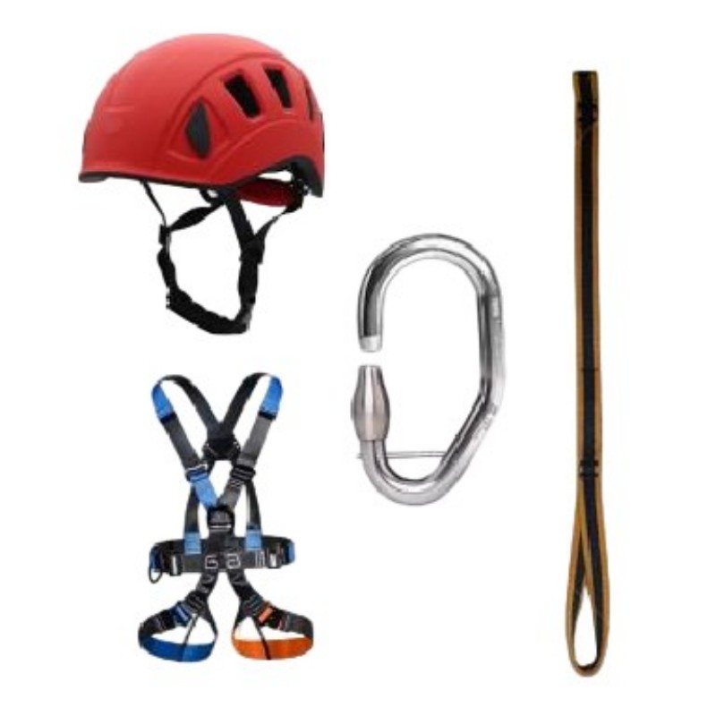 頭盔 1 頂;半身安全帶1條; 不間斷鎖扣1個(gè); 鎖扣連接挽索1條(75CM)