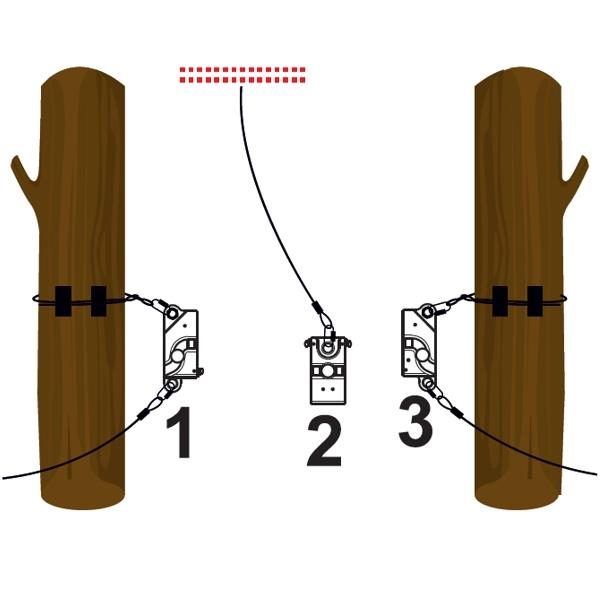 運(yùn)作原理非常簡(jiǎn)單:掛鉤開口小于纜索的直徑,但大于分力板的厚度。這樣可以確保安全,一旦扣上救生索,在您的課程結(jié)束之前,救生索都不可能脫出。如果參于者生病、或出現(xiàn)風(fēng)暴、火災(zāi)等意外,只有使用提供給公園管理者的特殊鑰匙,才能夠解鎖套筒,然后迅速撤離。
