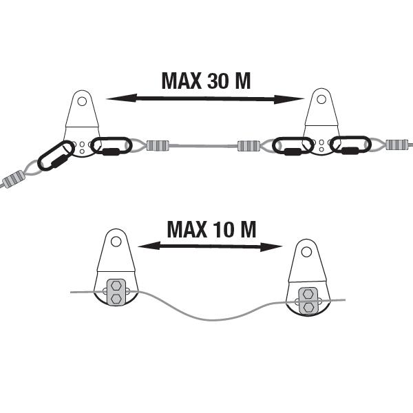 運作原理非常簡單:掛鉤開口小于纜索的直徑,但大于分力板的厚度。這樣可以確保安全,一旦扣上救生索,在您的課程結束之前,救生索都不可能脫出。如果參于者生病、或出現(xiàn)風暴、火災等意外,只有使用提供給公園管理者的特殊鑰匙,才能夠解鎖套筒,然后迅速撤離。