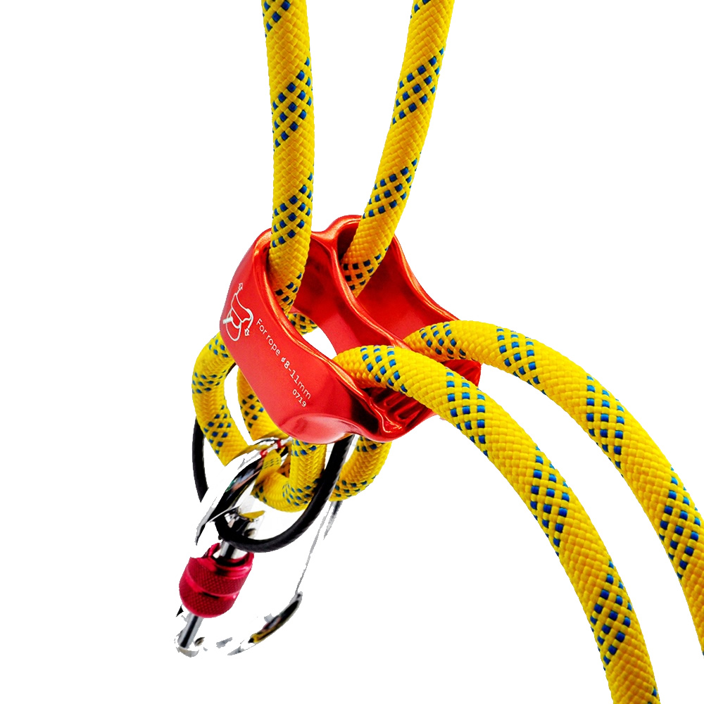 多功能下降、保護(hù)器,鋁合金材質(zhì)。可用于多段攀登中的領(lǐng)攀及跟攀保護(hù)和下降操作,創(chuàng)新設(shè)計(jì)適用于從7.6mm的雙繩到11mm的單繩。