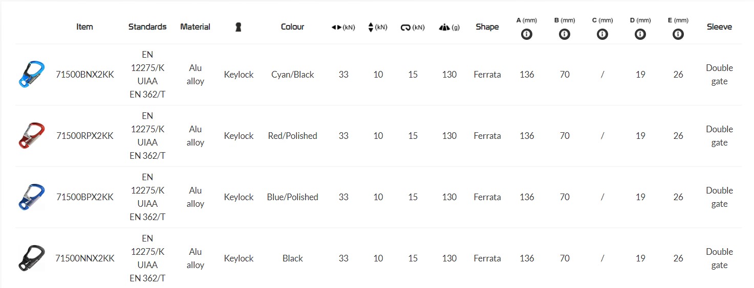 鋁合金配有雙門扣鎖的扣鎖. 打開扣鎖必要用手指拉前門時,用手掌打開后門。后門被保護,以防止意外打開墻壁.特別設計用于飛垃和冒險公園系索。