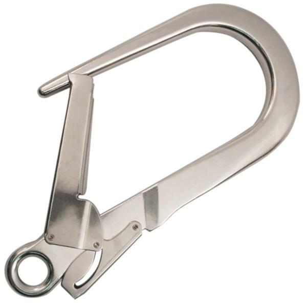 Double gate aluminum connector with wide gate opening for use in scaffoldings and trestel.