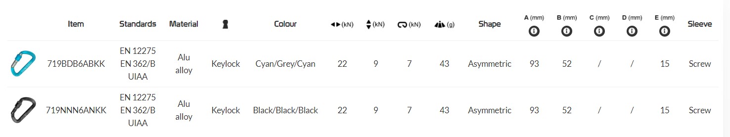 Argon S是一個重量最輕,尺寸較小的安全連接鎖。專為攀巖運動而設計,適合為更好的繩索滑行, 確保良好的定位的保護裝置和形狀適應用于容易地捆綁和解除丁香鉤. 較寬的繩索接觸面減少安全連接鎖的磨損. D形傳輸重大負載轉移到脊柱上,為最強軸的安全連接鎖. 非對稱的外形, 此外,是理想選擇扎繩連接或垂降設備或用于掛繩的末端. 螺旋門扣建議用于臟污環(huán)境,其他彈簧加載的門扣可能會因污垢而堵塞。