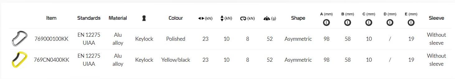 鋁制卡拉比納專為運(yùn)動攀巖和快速繪制使用。彎曲的門允許一個安全的手握和更快地插入繩子。接觸面更寬,以減少磨損和改善繩索的通過。