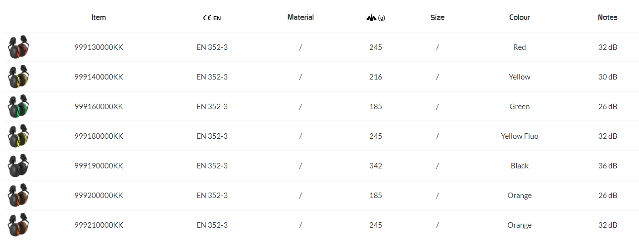 降噪3MPeltor®耳罩有7種版本,具有不同的隔音和顏色等級(jí)。