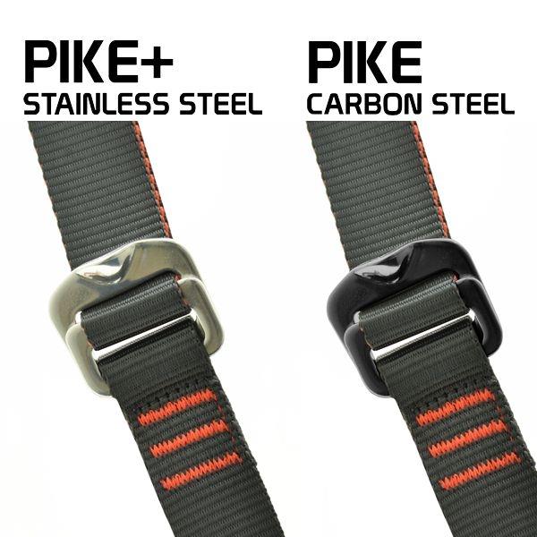 Available in two versions, PIKE with carbon steel buckles and PIKE+ with stainless steel buckles.