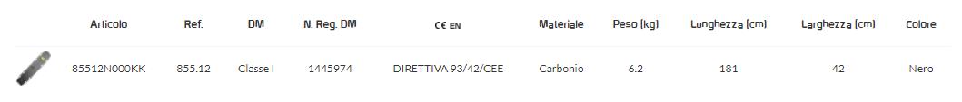 Revolutionary spinal board foldable in four parts, made of carbon fiber. Ready to use in few seconds by sliding the lateral “stiffening” bars (already assembled).