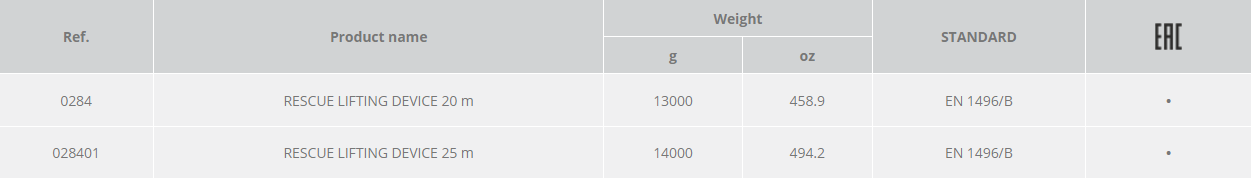 Steel cable rescue system designed for use with the Tripod Evo (ref.1883). Winch system with a 6.3 mm galvanized steel cable features a sturdy handle and auto-blocking braking system. Supplied with a pulley for the top of the tripod and a steel coil shock absorber. Maximum working load: 140 kg.