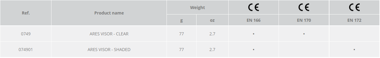- EN 172 (shaded version only): solar filter for industrial use.