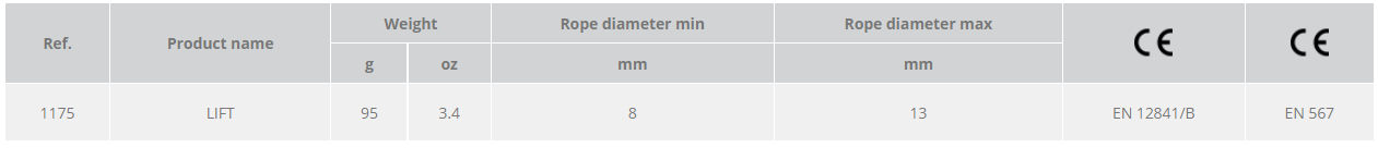 - EN 12841/B for semi-static ropes ranging from 10 to 13 mm.