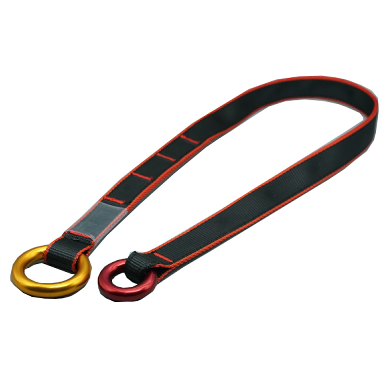 Special fixed anchor points for work on trees, and the reinforced flat belt design can cope with the complex working environment on trees and protect trees from damage. Asymmetrical design with metal hanging loops on both sides, color separation for easy identification. Can be installed directly on the ground, length: 90cm, 120CM Pull force: 22KN, EN 795/B
