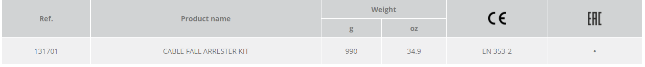 Product description: CAMP CABLE FALL ARRESTER KIT - Cable fall arrester kit