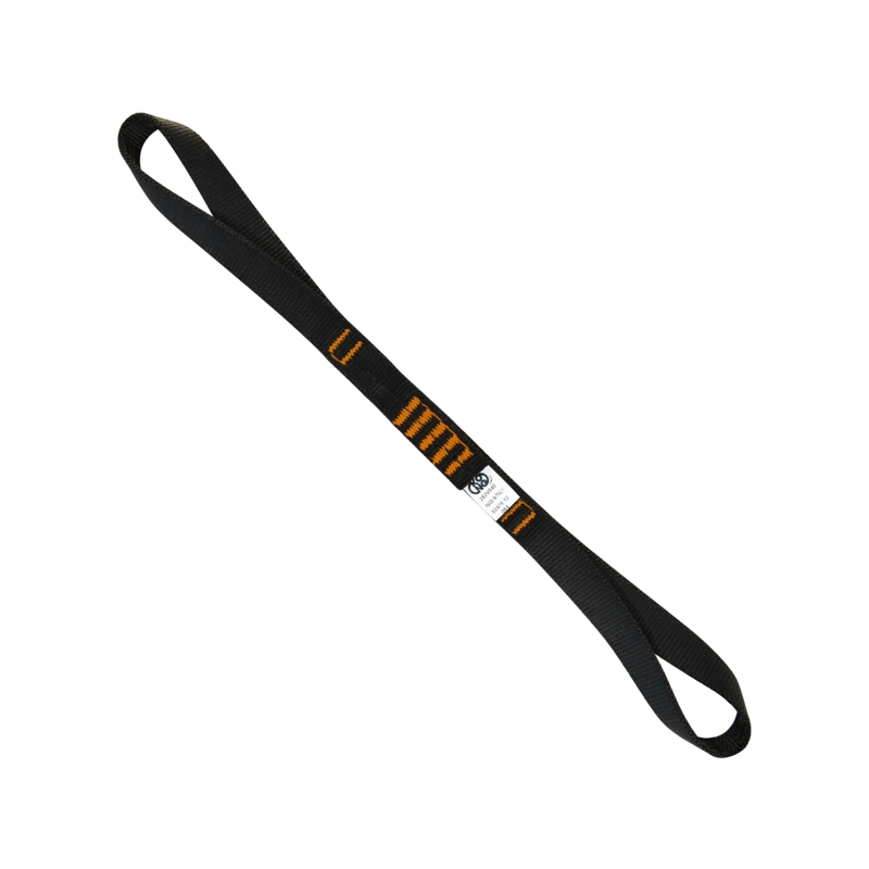 Nylon lanyard for use in adventure parks to connect the pulley Zip Evo to the harness. Made of 20 mm tape with twisted loops that allow a connection with a lark's foot knot to the harness and to the pulley. Available in 3 lengths: 40, 52 and 69 cm. Thickness of the sling increased to reduce the risk of use on the minor axis. Load: 22 kN