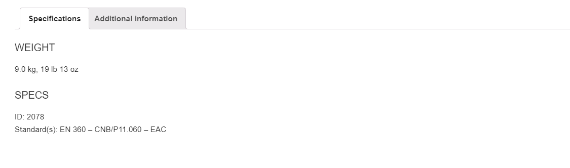 Complete with auto-locking swivel connector and internal mechanical energy absorbing system.