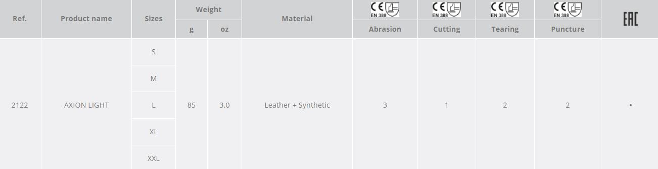 A very comfortable glove with great dexterity. The palm is constructed from premium goatskin leather, the back uses light and breathable mesh fabric, the cuff is durable elastic with a velcro closure.