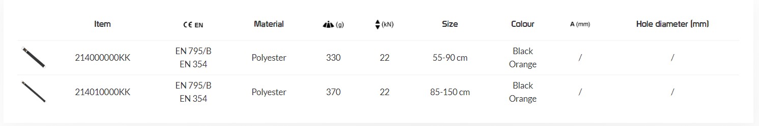 Adjustable 44 mm webbing made in ultra-resistant PL with carbon steel anchor rings and adjustment buckle.