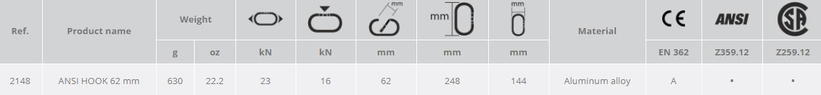 High strength aluminium alloy connector for use on metal structures. Large opening for connecting to beams and tubes up to 62 mm. ANSI and CSA certified with 16 kN / 3600 lbs gate strength. Double lever locking system ensures a high level of safety and ease of of use. 2021 UPDATE: connection of body and gate redesigned to be stronger.
