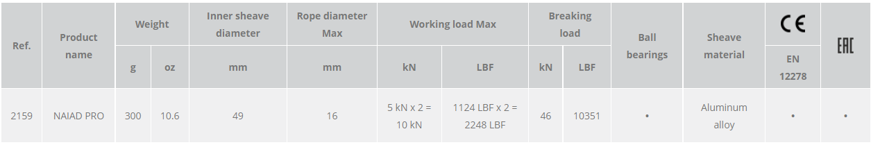 A high strength multifunctional pulley for heavy hauling and complex operations. Features a large wheel, a main attachment point that accommodates three carabiners, a large bottom attachment point, and two secondary attachment points on the sides for linking, positioning and attaching progress capture systems. For use with ropes up to 16 mm. Prusik minding, the self-locking knot can be installed on both sides. Sealed ball bearings for high efficiency and intensive use at high speed. Efficiency: 97%. Aluminum alloy body and wheel, stainless steel axle.