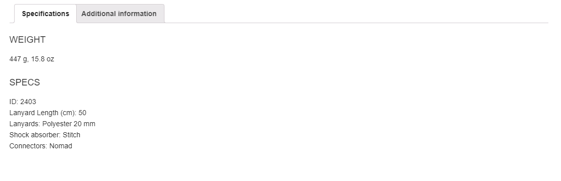 A high-end via ferrata lanyard set designed with our Vortex shock absorber that uses lacerated stitching to absorb the energy of a fall. The Y-formation formed from strong 20 mm webbing allows the climber to pass fixtures while remaining securely attached to the wall. Connects to any harness with a webbing twist ring that positions the unit in its upright position even when passed through vertical tie-in points. Equipped with two Nomad slidelocking carabiners.