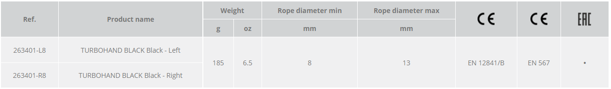 - EN 12841/B for semi-static ropes ranging from 10 to 13 mm.