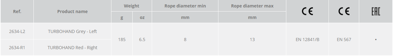 - EN 12841/B for semi-static ropes ranging from 10 to 13 mm.