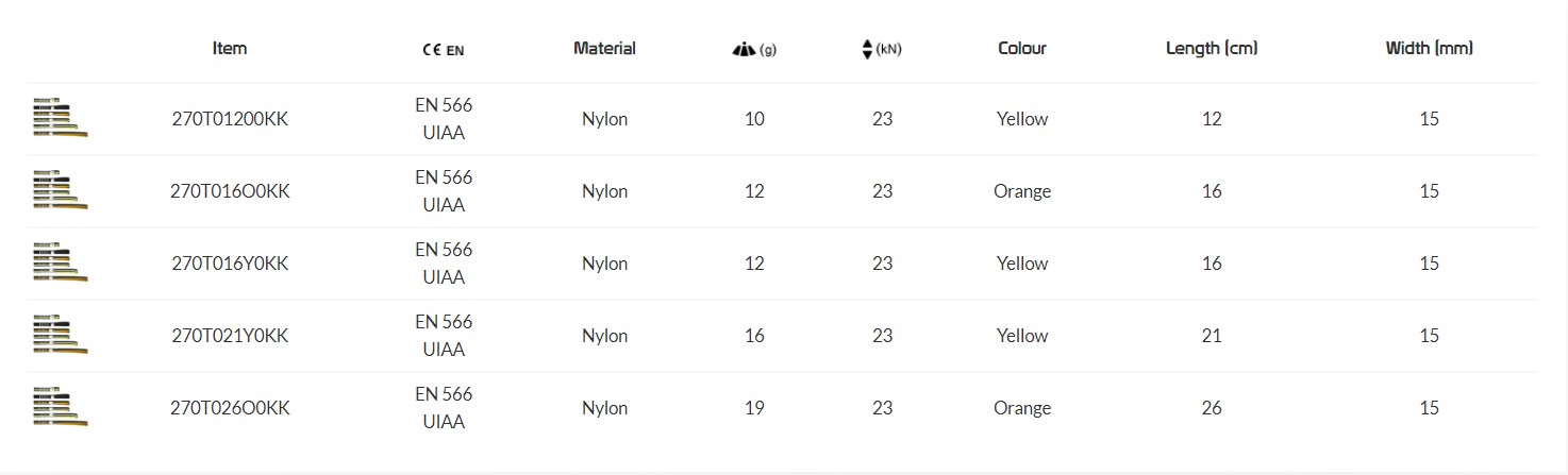 Nylon webbing for quickdraws for mountaineering, climbing, caving, canyoning.