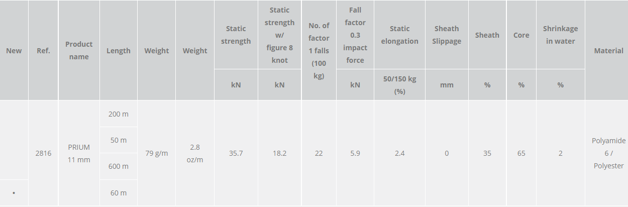The Prium 11 mm is the right choice for workers demanding a rope with superior strength and low elongation that remains compatible with most mechanical devices. The Prium uses a polyester sheath for increased resistance to the effects of humidity, dirt and dust. The super strong polyamide core combines with the 32 carrier sheath for good handling and twisted yarns for a very high level of abrasion resistance.