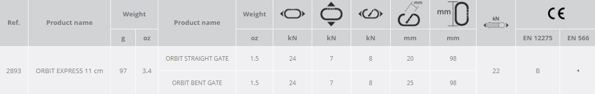 Equipped with a straight gate Orbit carabiner on the bolt end and a bent gate Orbit on the rope end