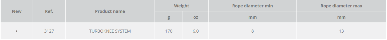 WARNING: the Turboknee System is a climbing aid device for progression only and must never be used to for life safety functions.