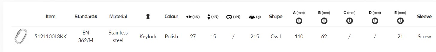 Oval carabiner made of AISI 316 stainless steel, wide-opening, fitted with screw sleeve. Max load of 27 KN. Conceived for heavy duty applications and for connection to structural anchor points, lifelines, etc.
