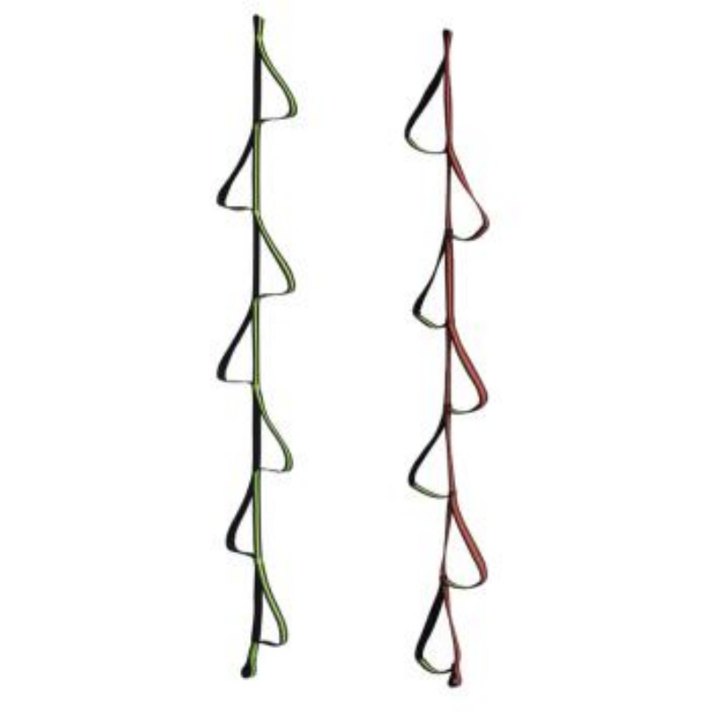 A 7-level nylon rope ladder, 2 meters in length, with a single-level tread fabric width of 25mm. The top connecting ring is connected to a metal lock for convenient hanging.