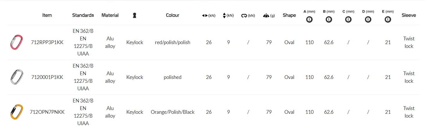 - Twist lock sleeve (2 movements): to open the carabiner turn the sleeve and pull.