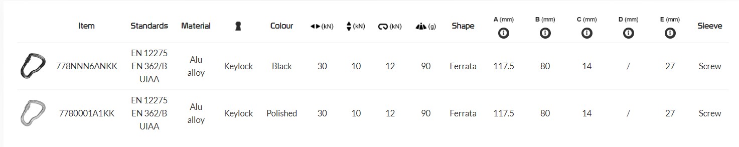 Aluminum carabiner with screw sleeve and Keylock system. Its special shape allows a large aperture (less than 27 mm!) and excellent grip. The screw sleeve makes it suitable for professional use.