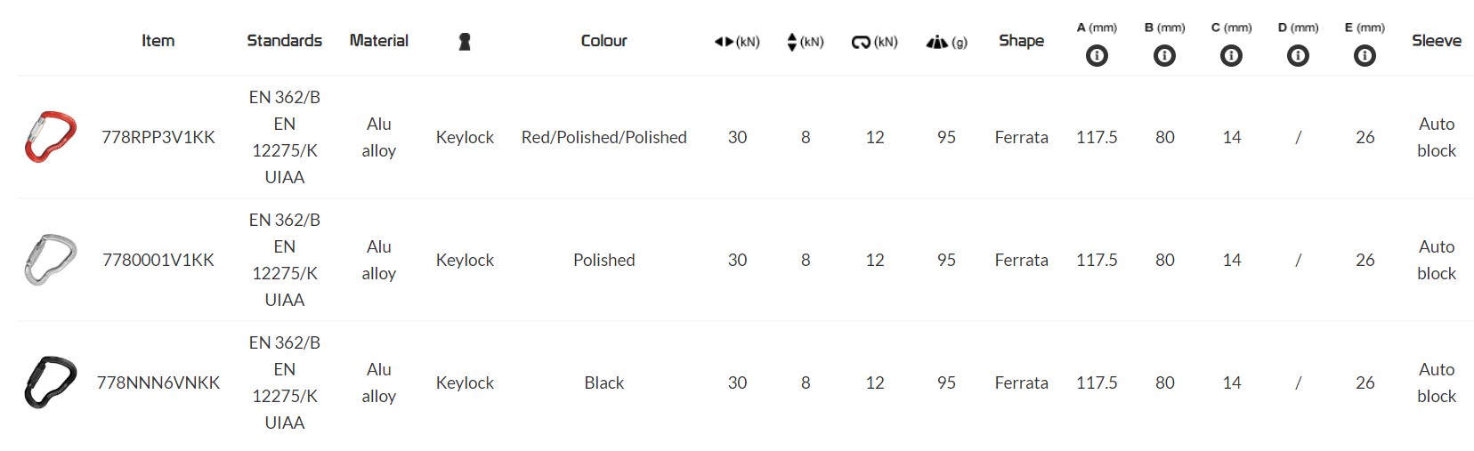 Aluminum carabiner with 3 movements Auto Block sleeve and Keylock system. Its special shape allows a large aperture (less than 26 mm!) and excellent grip. The Auto Block sleeve makes it suitable for professional use.