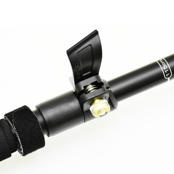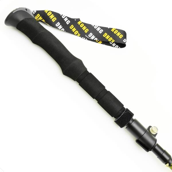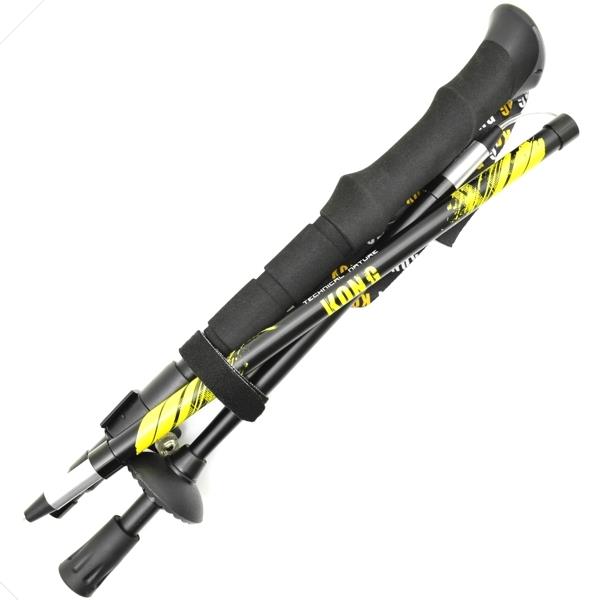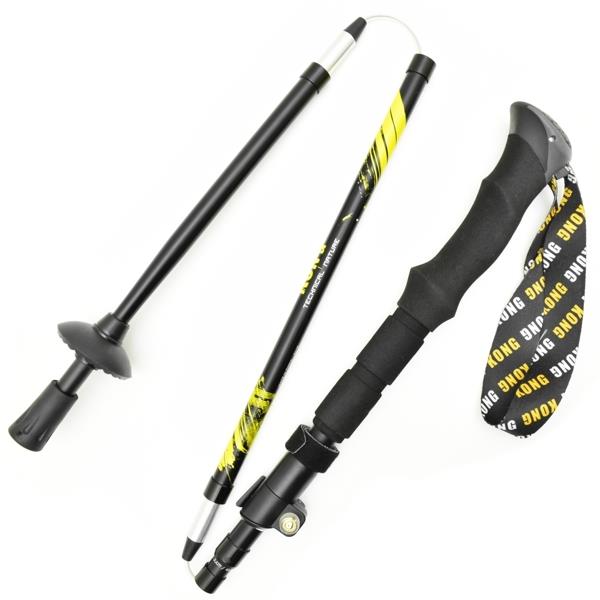 Alu hiking pole fitted with three-section foldable shaft for quick storage.