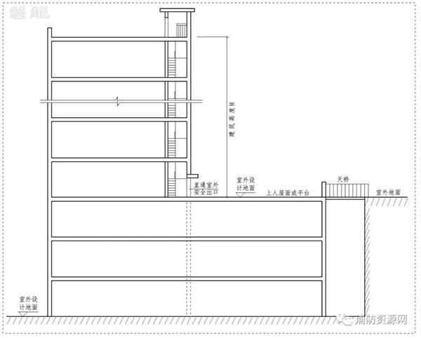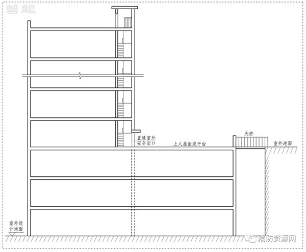 1.1 上人屋面或平臺(tái)與地面直接連通,或通過(guò)天橋直達(dá)地面(圖示3):