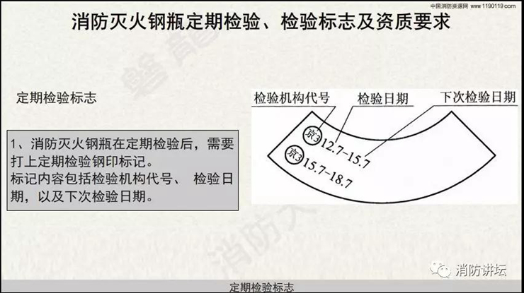 本視頻對(duì)消防滅火類鋼瓶的報(bào)廢年限、定期檢驗(yàn)周期、檢驗(yàn)標(biāo)志及資質(zhì)要求等,進(jìn)行詳細(xì)講述。
